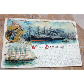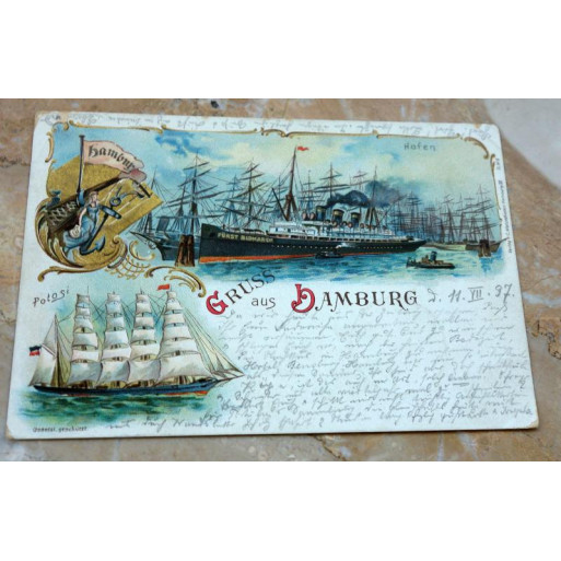 Poskarte Gruß aus Hamburg 11.12.1897 gesetzt geschützt