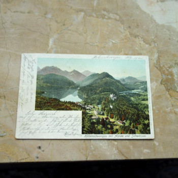 Postkarte Hohenschwangau mit Alpsee und Schwansee 15.04.1902