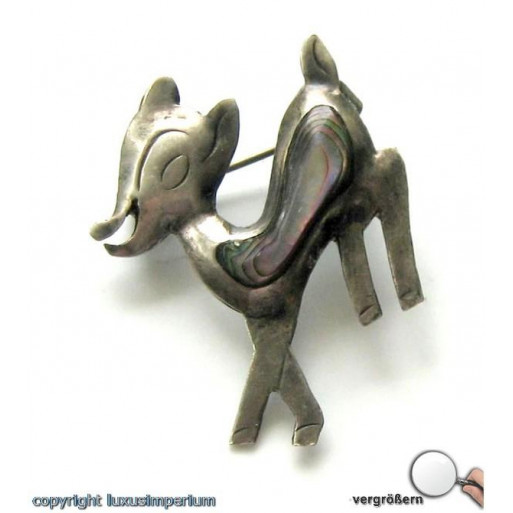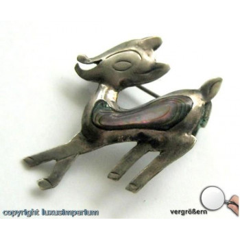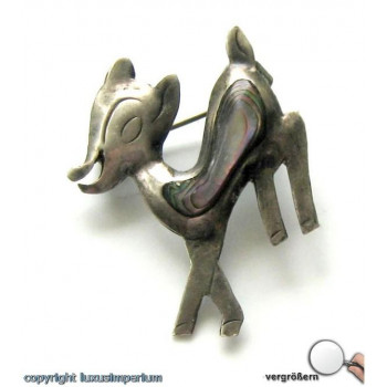 *Perlmuttbrosche Silberbrosche Brosche mit Perlmutt in aus 925 Silber Reh Bamby