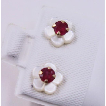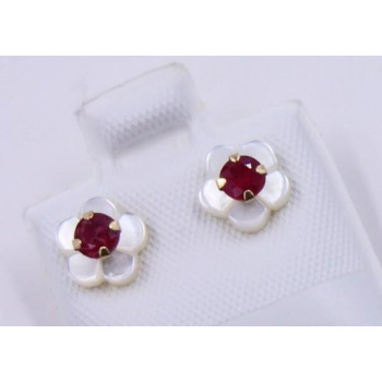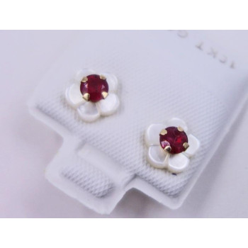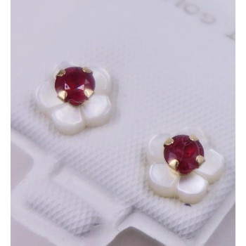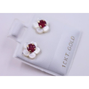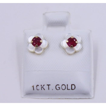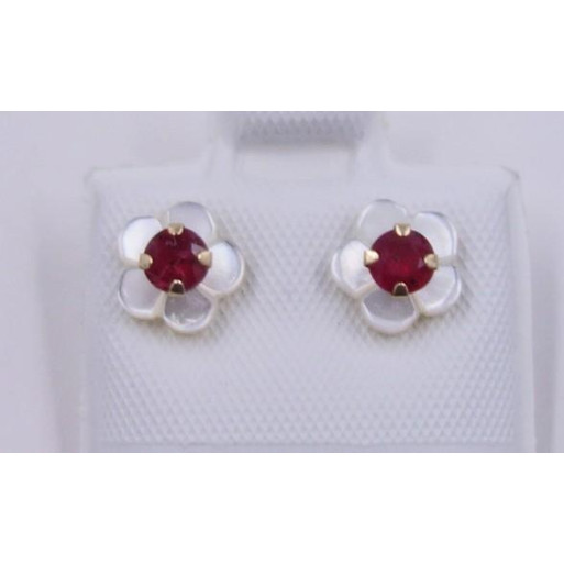 - Sie betrachten Blütenohrringe gearbeitet aus 10 karäzigem Gelbgold - - mit einen leuchtenden Rubin geschmückt ist er ein wahrer Blickfang - - Ein bezauberndes Accessoires -