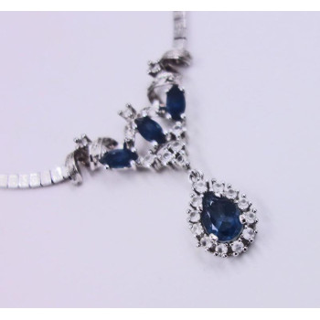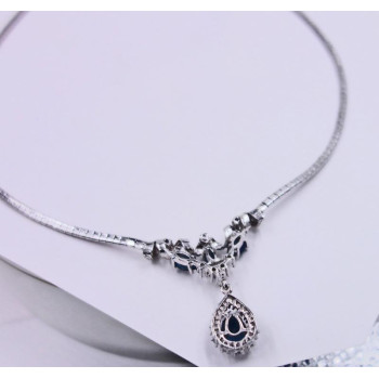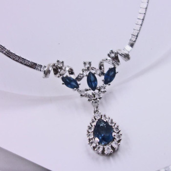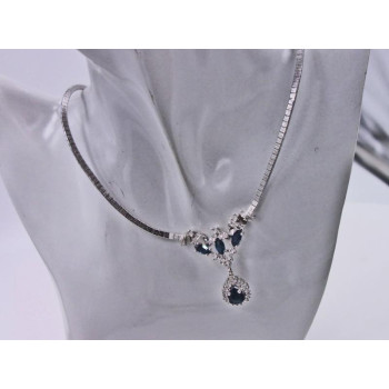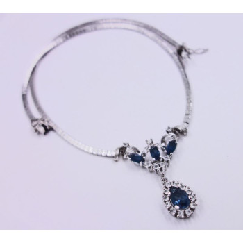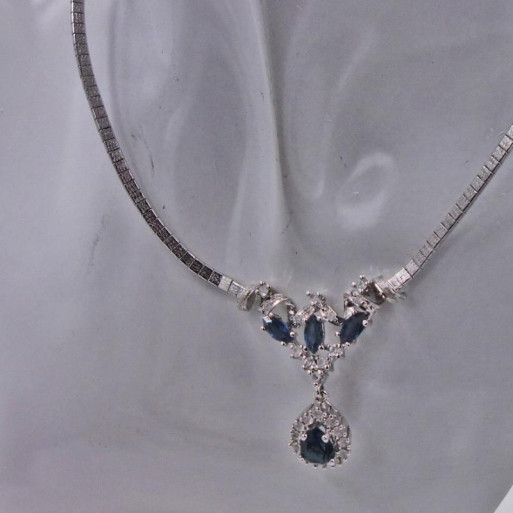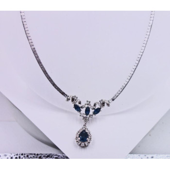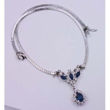 - Sie betrachten ein elegantes Collier, gearbeitet in 925 echt Silber - - Mit vier Saphire und Kristalle Geschmückt ist es ein reizender Blickfang - - Ein bezauberndes Accessoires -