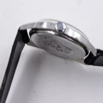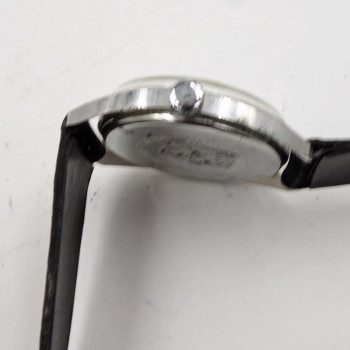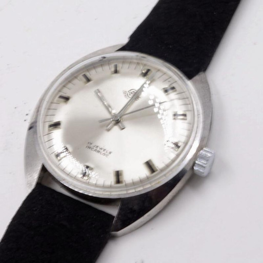 17 JewelsFunktionen: Stunde, Minute, Sekunde Gehäuse: EdelstahlDurchmesser: 35 mm ohne KroneArmband: Schwarzes Lederband mit DornschließeBesonderheit: ungetragenZustand: ungetragen mit LagerspurenBox/Papiere: neinHerstellung ca.: 70er JahreHerstellernummer: nicht zutreffendMarke: SengleProduktart: ArmbanduhrAbteilung: UnisexStil: Elegant