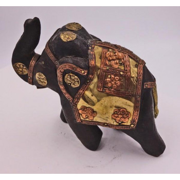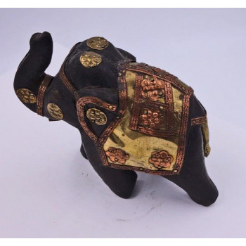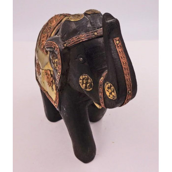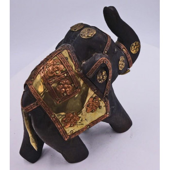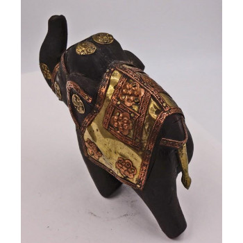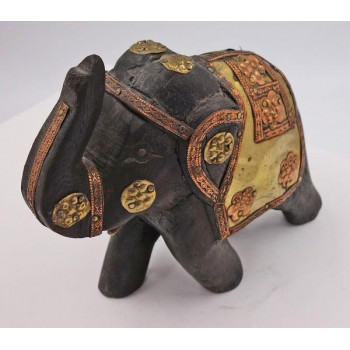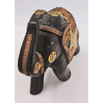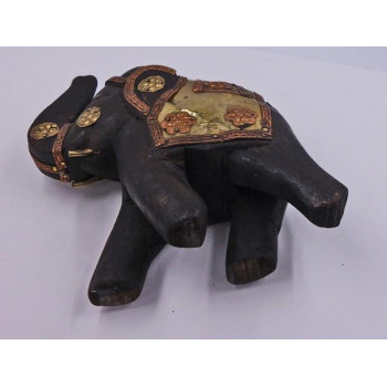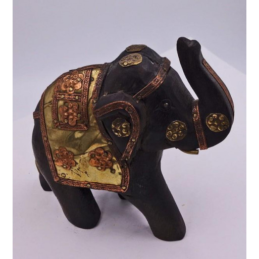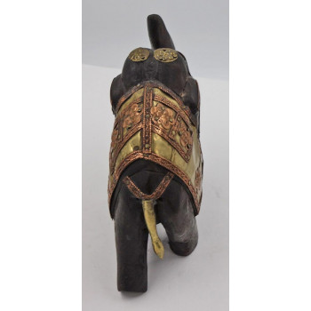 Elefant aus Holz Decke mit Kupferbeschläge Handgeschnitzt Glück Figur