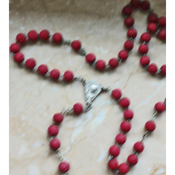 Antiker Rosenkranz mit Korallenperlen und Kreuz Muttergottes in versilbert