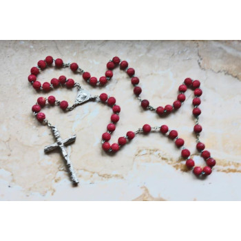 Produkttyp: RosenkranzMaße: Länge 41 cm ohne Kreuz Breite 7 mm Kreuz 5 x 3 cmMaterial: Korallenperlen