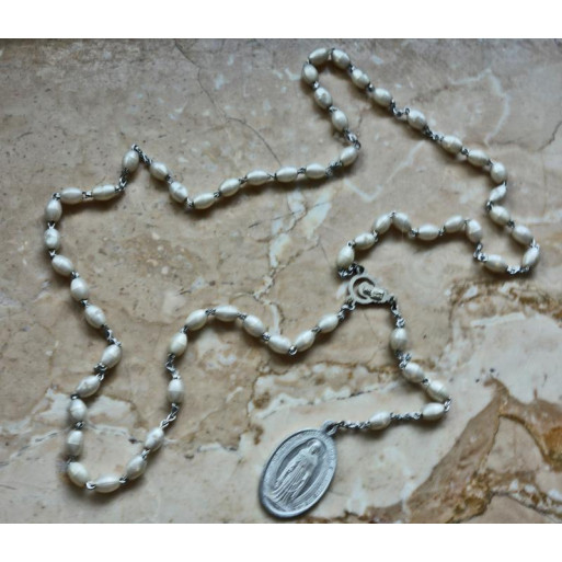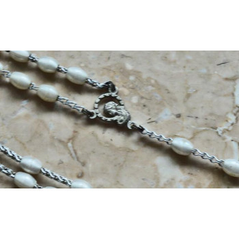 Antiker edler Rosenkranz mit Perlen und Anhänger aus Metall Glauben Beten