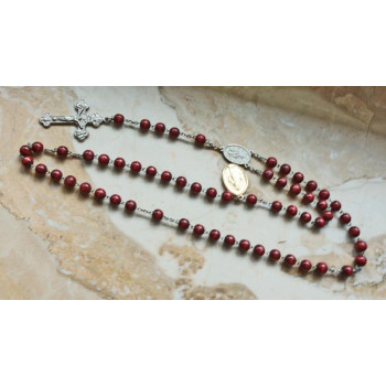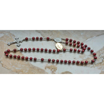 Produkttyp: RosenkranzMaße: Länge 43,5 cm ohne Kreuz Breite 7 mm Kreuz 4 x 3 cmMaterial: rote Perlen