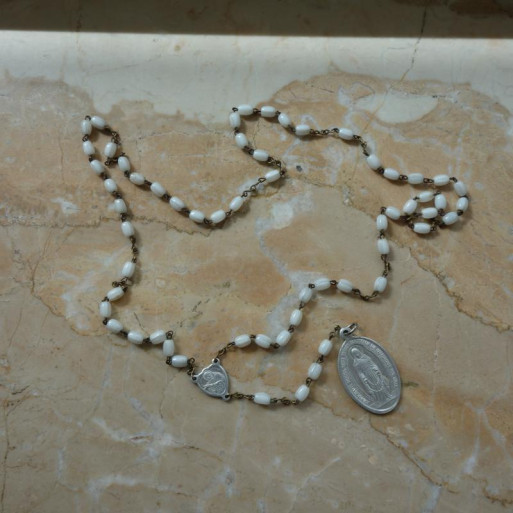 Antiker edler Rosenkranz mit weißen Perlen und Anhänger Beten Sammlerstück